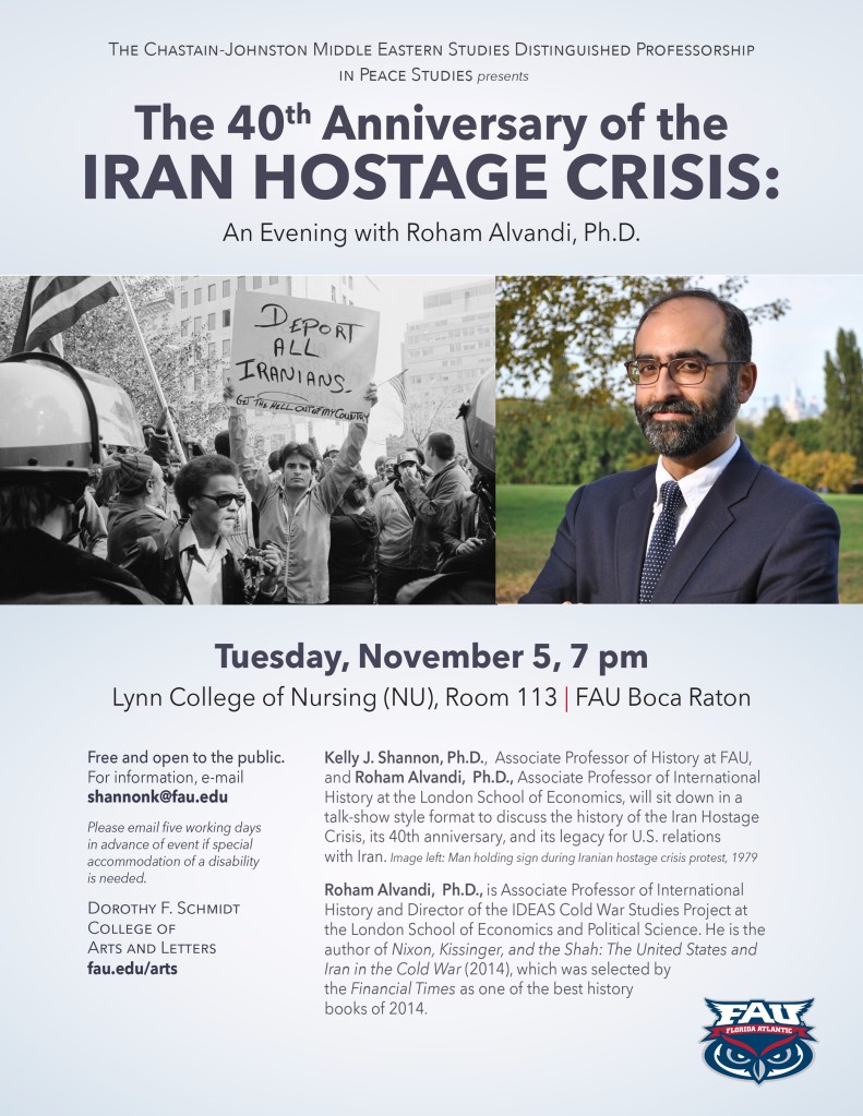 Upcoming Free Event: “The 40th Anniversary of the Iran Hostage Crisis: An Evening with Roham Alvandi, Ph.D.,” Nov. 5 at 7 p.m. at FAU
